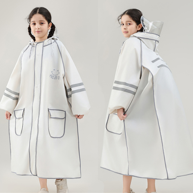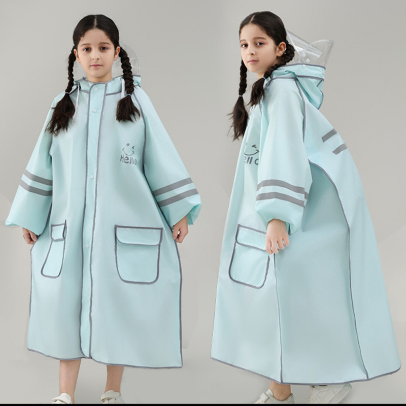 Barnas regnfrakk med dobbel brem og lang glidelås kombinerer praktisk funksjonalitet med forbedret beskyttelse for barn mot elementene. Denne regnfrakken har en dobbeltlagskonstruksjon med et vanntett ytre lag som avviser regn og fuktighet. Det indre laget er designet for å være pustende, noe som sikrer komfortabel bruk over lengre perioder. Den utvidede lengden gir full dekning, og beskytter effektivt barnets kropp mot regn og vind. Designet med glidelåslukking gjør det enkelt å ta av og på, og lett for barn å administrere selvstendig. I tillegg har regnfrakken en hette med kant, designet for å flytte regnet vekk fra ansiktet og øynene, og forbedrer den generelle beskyttelsen.